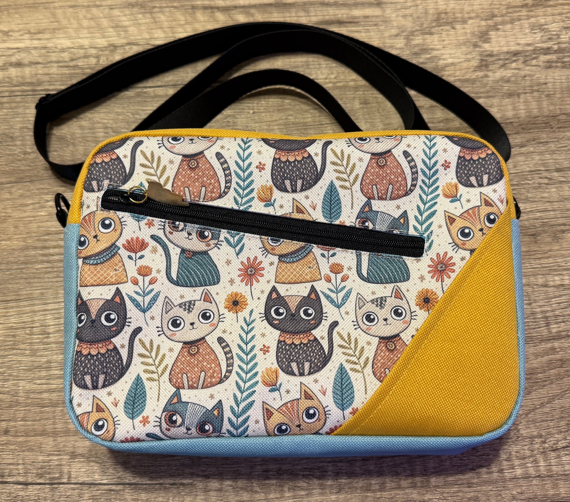 Hand made with blood sweat and tears by Pharaoh's caretaker Jenn Dragunas! High quality bag made from scratch featuring not only a Cat-themed design but also Cat-themed zipper pulls!