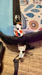 Hand made with blood sweat and tears by Pharaoh's caretaker Jenn Dragunas! Hugh quality bag made from scratch featuring not only a Cat-themed design but also Cat-themed zipper pulls!