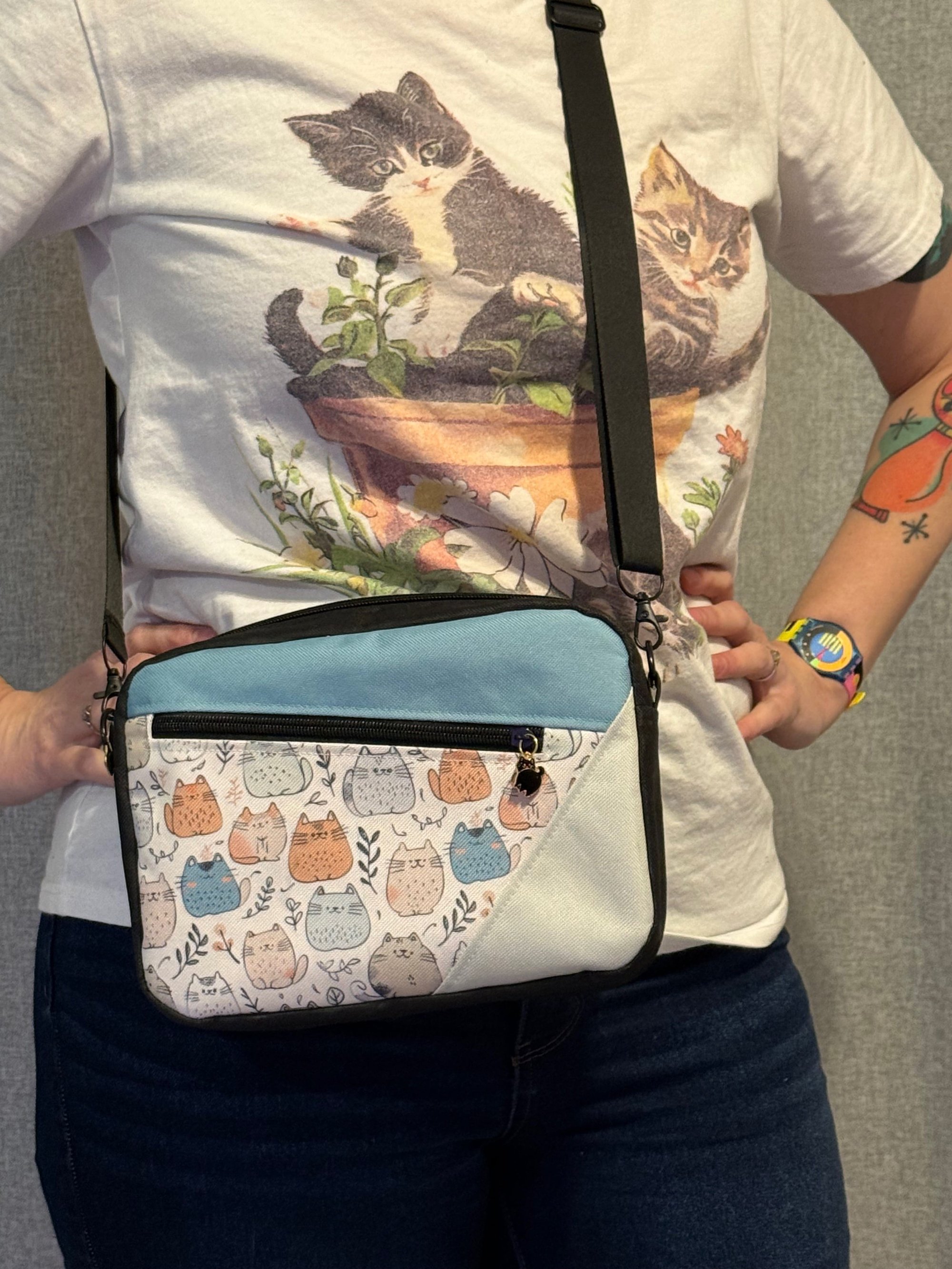 Hand made with blood sweat and tears by Pharaoh's caretaker Jenn Dragunas! Hugh quality bag made from scratch featuring not only a Cat-themed design but also Cat-themed zipper pulls!