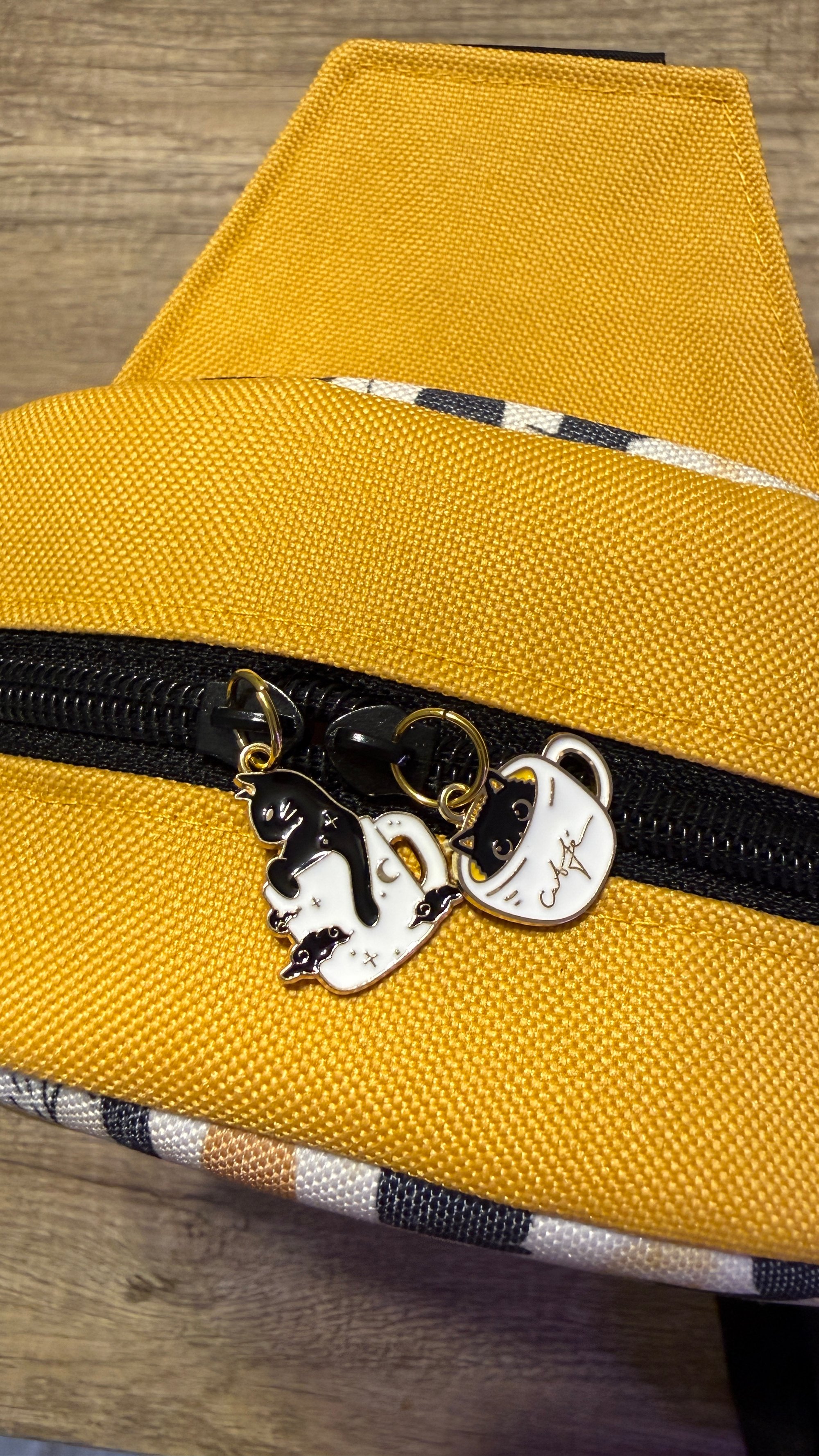 Hand made with blood sweat and tears by Pharaoh's caretaker Jenn Dragunas! High quality bag made from scratch featuring not only a Cat-themed design but also Cat-themed zipper pulls!